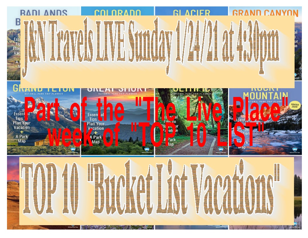 Join us on Wednesday when we will be part of "The Live Place, Top 10 Week". On this week's Chat we will be talking about our "Top 10 Bucket List Vacations". Hopefully you can give us some suggestions that we haven't thought of?? Drop by and say hello.