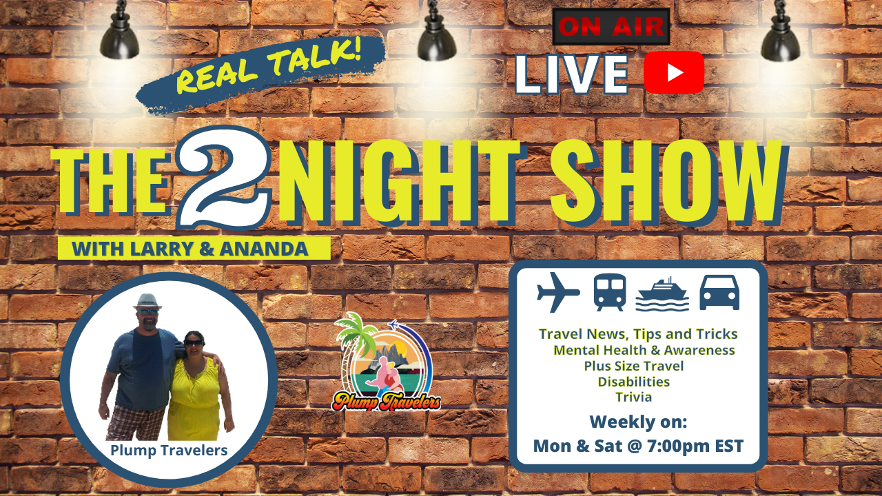Come Join Larry & Ananda each Monday & Saturday night at 7pm Eastern for "The 2Night Show". A travel talk show where we talk about: Travel News, Tips & Tricks, Mental Health & Awareness, Plus Size Travel, Disabilities, Trivia, and much more.